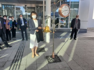 12月24日愛媛新聞社1階ホールで、松山ユネスコ協会主催の作文コンクールの表彰式が行われ、松山市立久米中学校2年生の大西彩葉さんが国際ソロプチミスト松山会長賞を受賞されました。 左は受賞者の代理の方です。