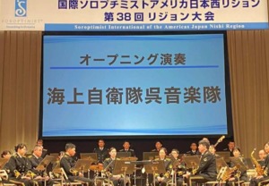 4月25日・26日 平和公園にある広島国際会議場にて、国際ソロプチミストアメリカ西リジョン 第38回リジョン大会が開催され8名で参加してまいりました。SIA会長ボビー・エンダーリンさん、SIA理事綾部純子さんをお迎えして、西リジョン中四国地方787クラブ705名が集いました。オープニングは海上自衛隊呉音楽隊の演奏で楽しく華やかな雰囲気で始まり、1年間の活動の集大成として多くを学び、会員としての意識向上に繋がり、友情を深め、私達の活動の意味を再認識することが出来た2日間でした。