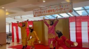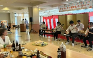 7月25日(木)、会長は理事会に出席した後、会員4人と「アイネックス(愛媛大学学生国際交流協力事業会)留学生パーティー」に出席しました。 4月に入学した留学生の流暢な日本語と英語の挨拶で始まり、日本の学生による和楽器の演奏やインドネシアの舞踊等が有り、楽しい時間を過ごしました。