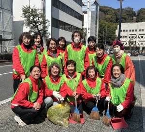 3月18日 例会前にマイロード清掃を行いました。この冬は寒い日が多く、久しぶりの開催でした。お天気はいいのですが、この日は真冬が戻ったような寒さ!防寒をしっかりして、この笑顔です。