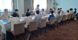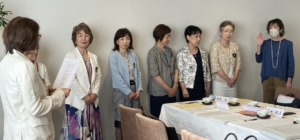 2025年6月17日、松山モノリスで6月移動例会と年次総会、親睦会を行いました。 年次総会では、会長初め、新旧の役員交代式を行いました。 その後の親睦会では、オープニングに今年のガールズサミット参加の高校生が登場。松山東雲高校1年生の部活仲間と振り袖早着付けを披露してくれました。 余興では会員の古い写真を持ち寄った「私は誰でしょう?」ゲームがあり、メンバーのお宝写真に会員一同、笑いの絶えない時間を過ごしました。