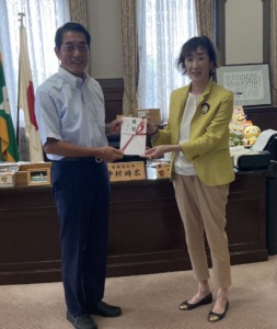 8月22日、会長交代のご挨拶に、中村時広愛媛県知事を訪問しました。 併せて『子どもの愛顔応援ファンド』への寄付金贈呈をさせて頂きました。 知事からは、人口減少対策など、最近の愛媛県の取り組みについてお話して頂きました。