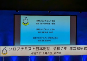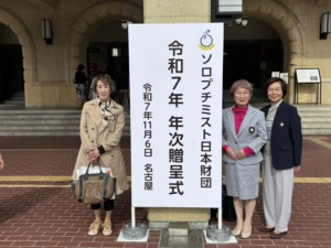 11月6日、ソロプチミスト日本財団 令和7年 年次贈呈式に出席しました。 松山クラブの重見会員は選考委員長を務められました。大きなスクリーンで紹介される姿は、同じクラブに所属するものとして誇らしく、嬉しく思いました。