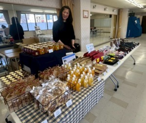 待合を兼ねたバザーコーナーでは、生花やお餅、パールのアクセサリーなどを販売。障害のある方の福祉作業所で作られたジャムやコーヒーも人気を呼んでいました。
